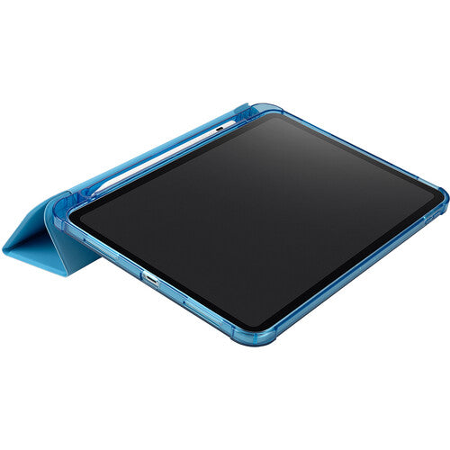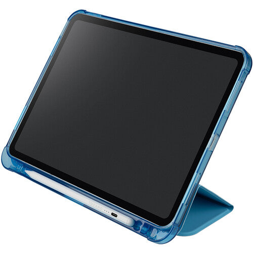 The pink Satin Folio Case from Tucano is a protective cover for the 10th generation 10.9" iPad (2022), part of which is made of recycled plastic. The front cover features a satin-effect material and converts into a convenient stand. The anti-shock rear shell is made from transparent double-injected polycarbonate bordered with TPU (Thermoplastic Polyurethanes) for easier iPad insertion. The satin cover has an internal compartment to store your Apple Pencil and an external holder for charging it. It's also military standard test approved.